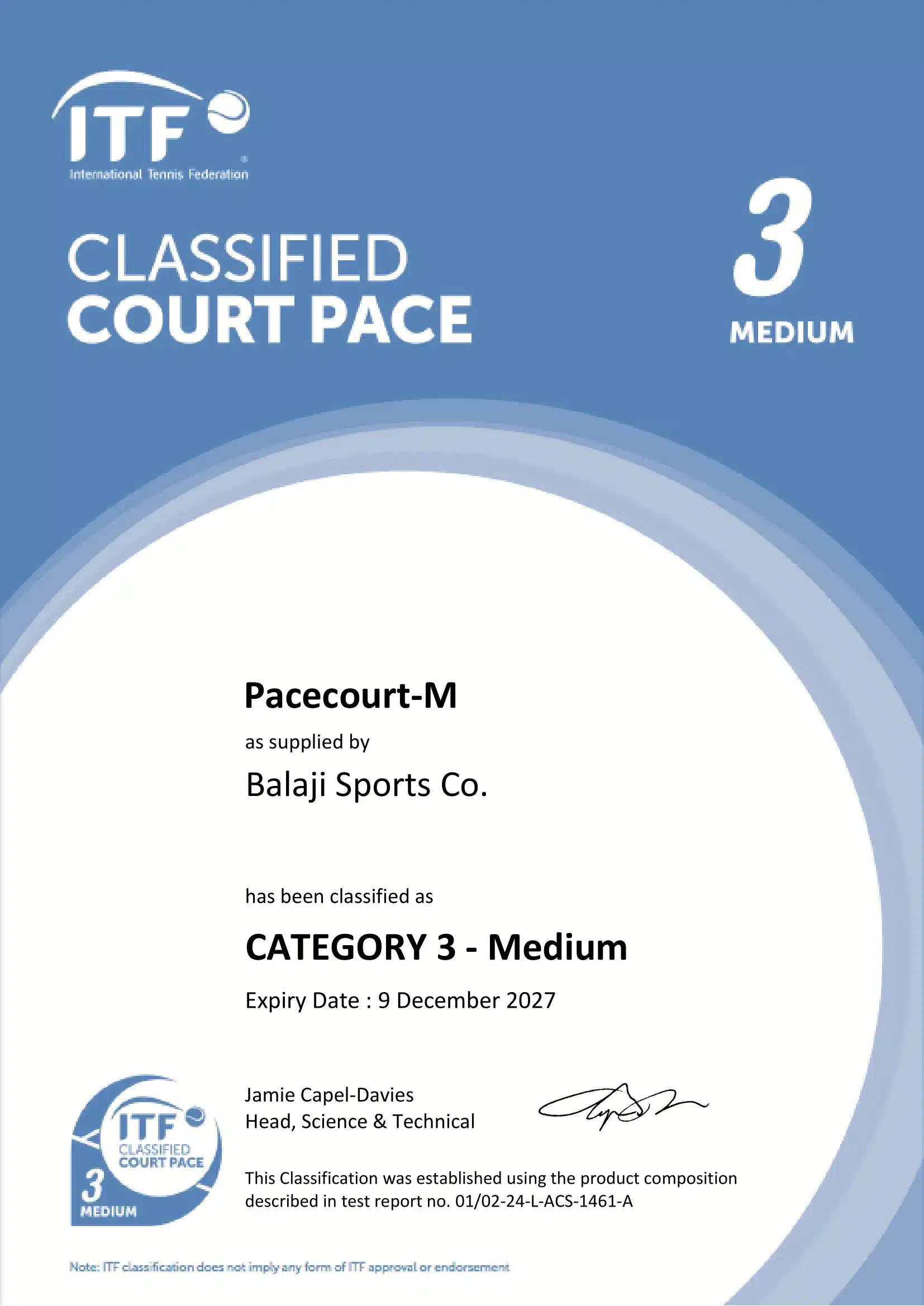 To verify the ITF 4 certification for tennis court resurfacing, you can request the certification documentation directly from us. Additionally, the ITF publishes a list of certified court surfaces on their official website, which includes details about the specific products and their classification.